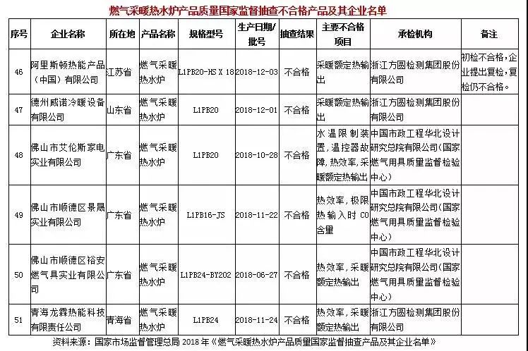 通报披露,国家市场监督管理总局此次在对燃气采暖热水炉产品的抽查中,共抽查了北京、天津、河北、辽宁、上海、江苏、浙江、山东、广东、青海等10个省、直辖市51家企业生产的51批次燃气采暖热水炉产品。